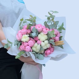 Bouquet SOFITEL with peony roses and cotton – Fast Flower Delivery | Latona
