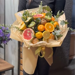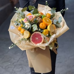 Orange, grapefruit, lemon, kiwi, tangerine, lime, eucalyptus, and decorative plants