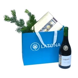 Festive Gift Bag: Wine, Chocolates, Pine Branches – Perfect Holiday Gift
